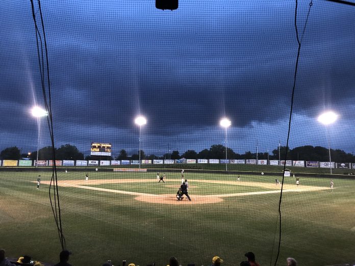The stakes are high at this point. Every pitch matters. In between the batters, everyone turns to their phones so they can check the radar to determine which direction the storm is moving.